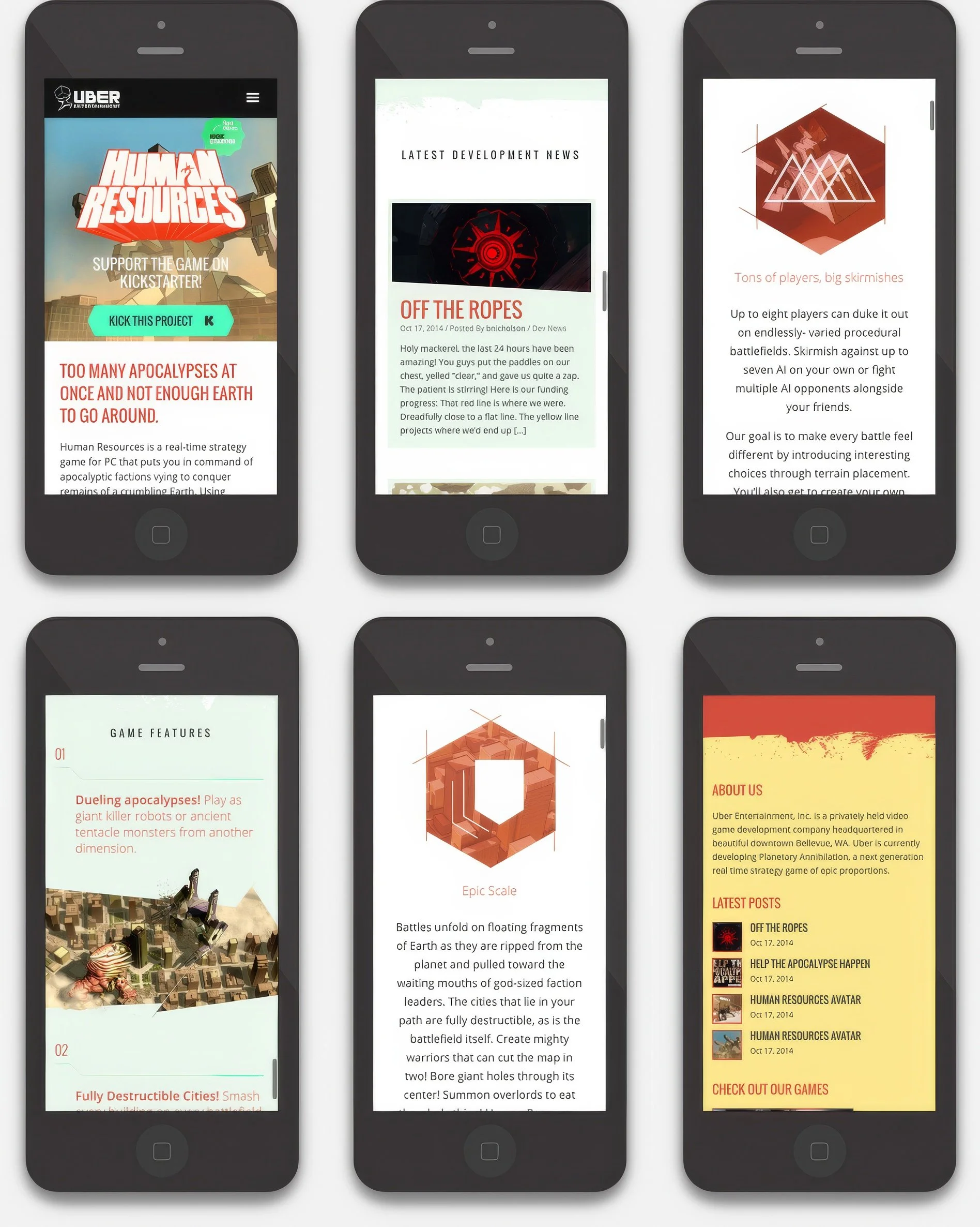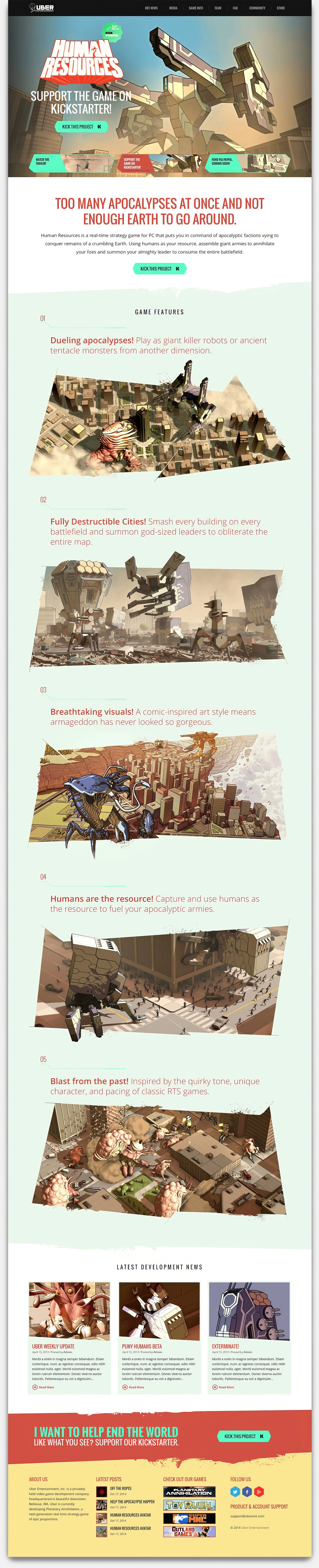 Uber Entertainment wanted a landing page (web & mobile) to highlight a Kickstarter campaign for their game “Human Resources.”
